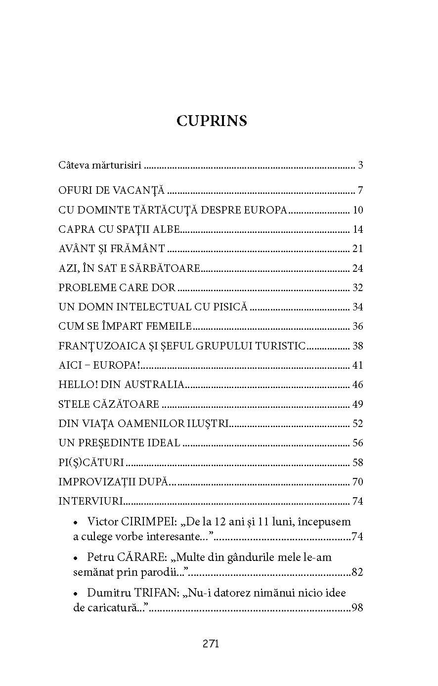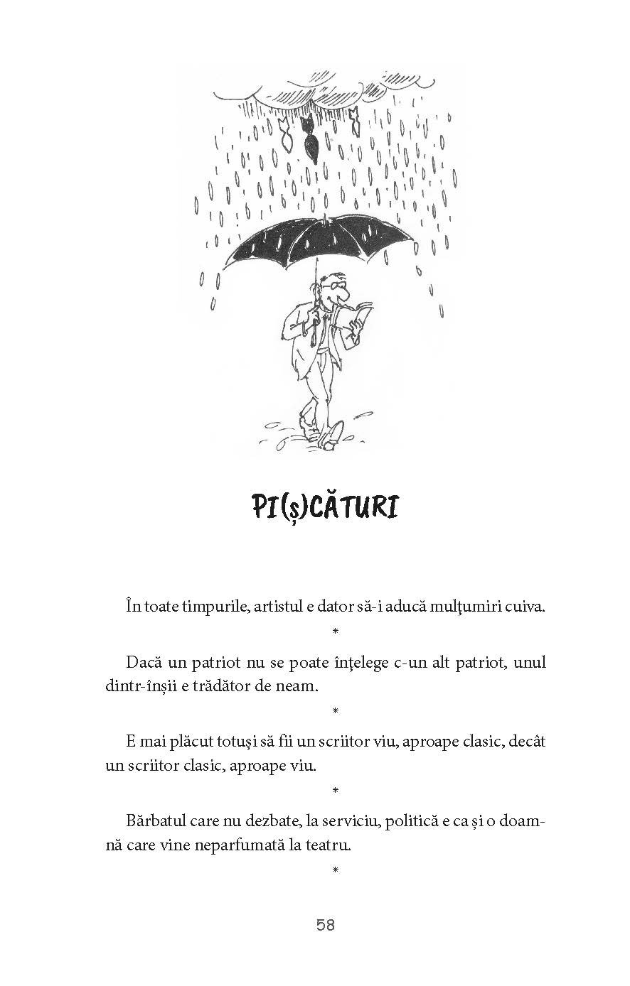 În carte mai sunt incluse câteva pagini de aforisme (pi(ș)cături) și un grupaj de improvizații (de fapt, parodii) după unele texte de Esop, Jonathan Swift, Efim Tarlapan, Constantin Cheianu.