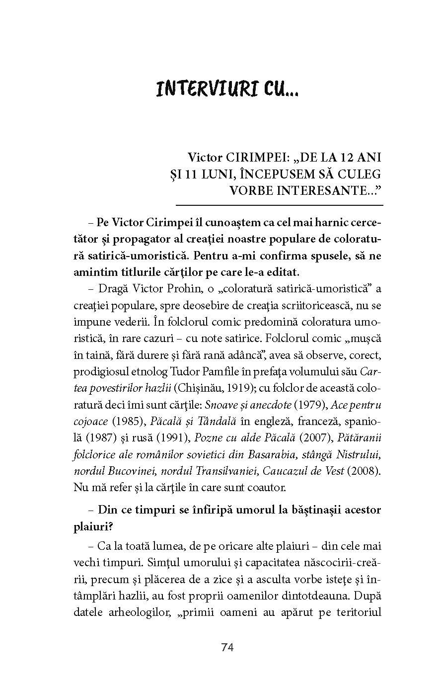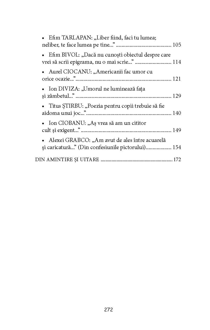 2) Interviuri cu cei mai apreciați scriitori satirici și caricaturiști de la noi (Petru Cărare, Efim Tarlapan, Ion Diviza, Alexei Grabco, Dumitru Trifan ș.a.);